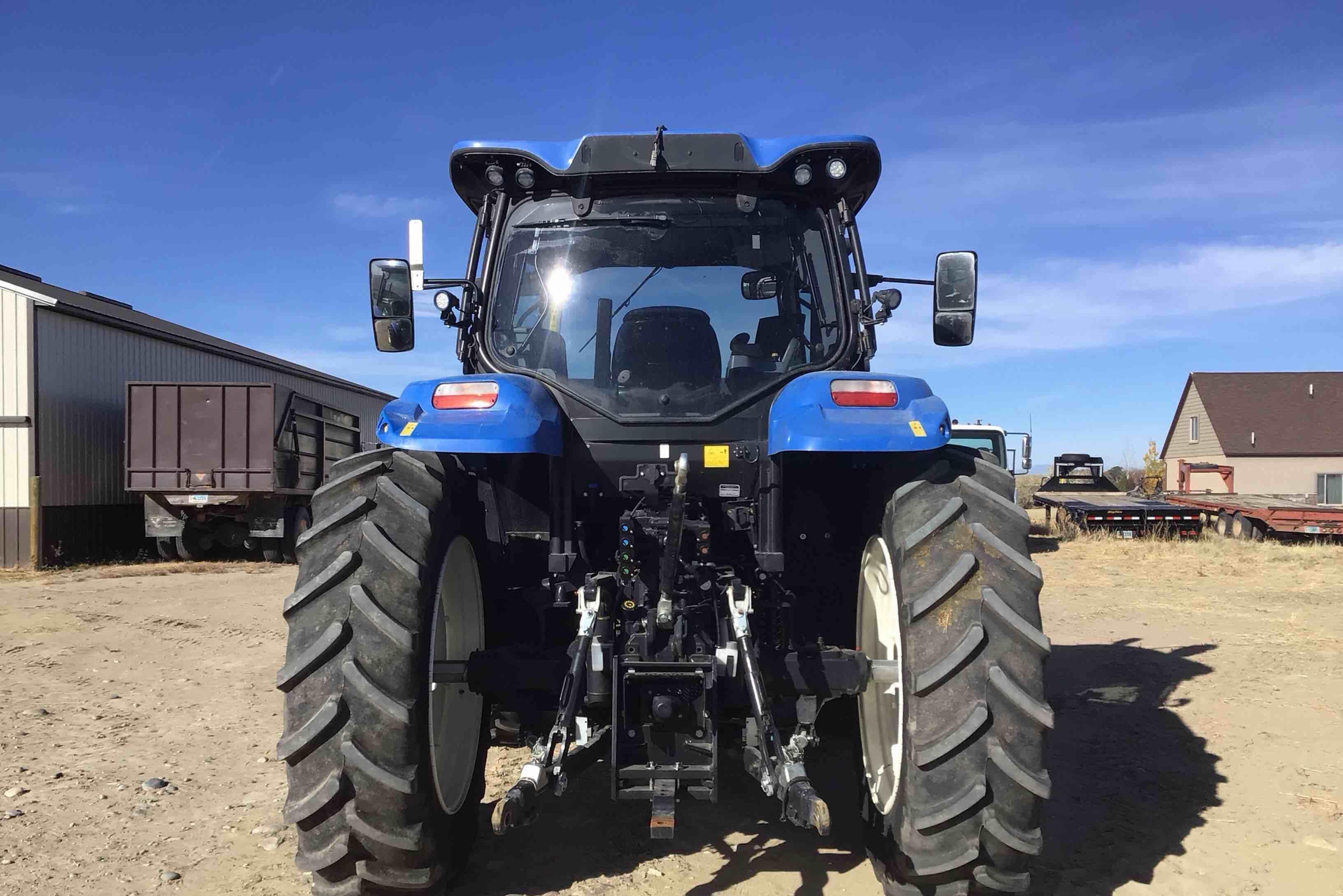 2021 New Holland T6.180 MFWD Tractor W/Grapple Loader, 814 Hrs Showing, 145 Hp, FPT 6.7L 6-cyl Turbocharged Diesel, Block Heater, Dynamic Command, 24 Forward Speeds, 24 Reverse Speeds, 540/Small 1000 PTO, Rear PTO, Rear Fender PTO Control, 3 Hydraulic Outlets, Rear Fender 3-Pt Hitch Control, 3-Point Hitch, Hydraulic Top Link, Differential Lock, 380/85R30 Front Tires, 460/85R42 Rear Tire Size, Front And Rear Fenders, New Holland 855SLA, Quick Attach Loader, Quick Attach Bucket, Joystick Loader Control, Single Point Loader Hyd. Hook-up, 8' Loader Bucket Width, New Holland, Standard Cloth Seat, Electric Adjustable Mirrors