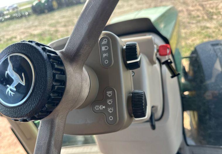 The operator�s station includes air conditioning and heating for comfort, complemented by a John Deere display for easy monitoring and control. The tractor is equipped with a 1 3/4 inch 1000 RPM PTO, a three-point hitch with top link and quick attach, a seven-pin outlet, and an ISOBUS outlet for enhanced implement compatibility.