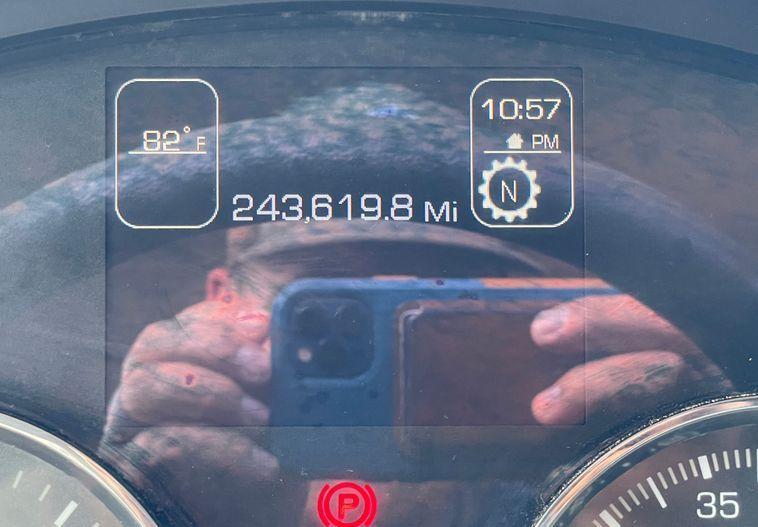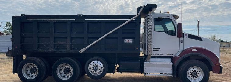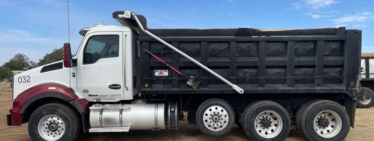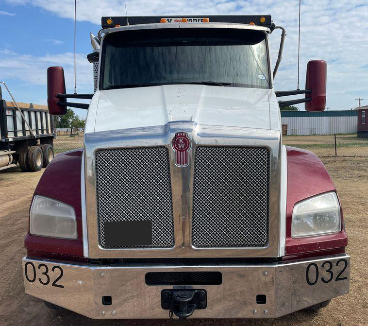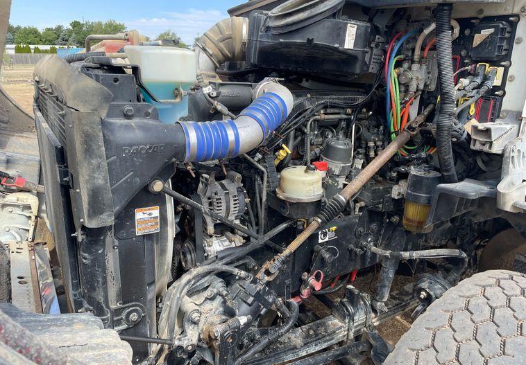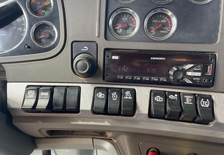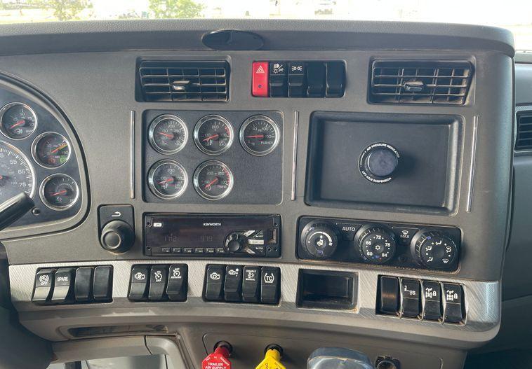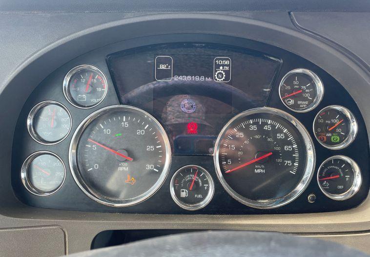 The 2016 Kenworth T880 dump truck has 243,620 miles on the odometer and 11,231 hours on the meter. It is powered by a Paccar MX-13 engine with a 12.9L displacement and 6 cylinders, running on diesel fuel. The engine is equipped with an engine brake.