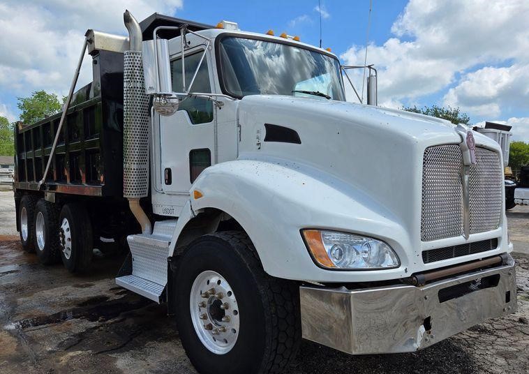 The 2011 Kenworth T440 dump truck has 534,864 miles on the odometer and 12,642 hours on the meter. It is powered by a Cummins ISL diesel engine with six cylinders and a displacement of 8.9 liters. The engine features an engine brake and is paired with an automatic transmission.