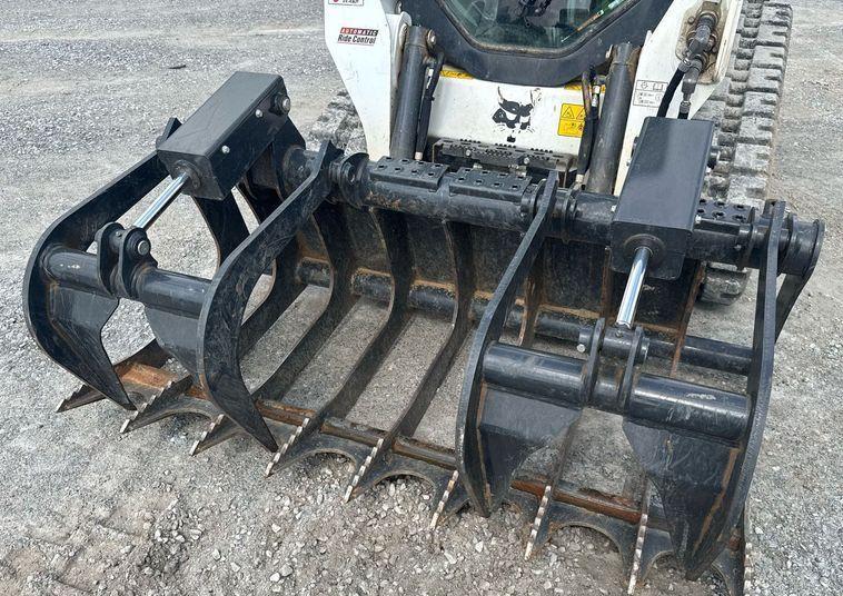 Included with this loader are a Bobcat root grapple bucket (72 inches wide) and a Bobcat heavy-duty bucket (68 inches wide). The undercarriage features 13-inch wide tracks, providing excellent traction.