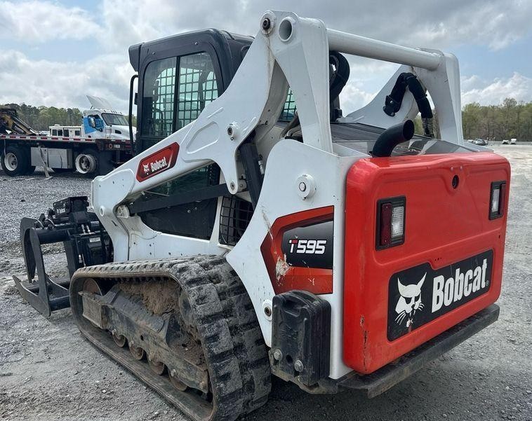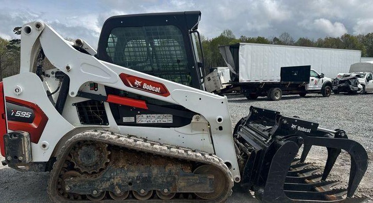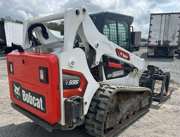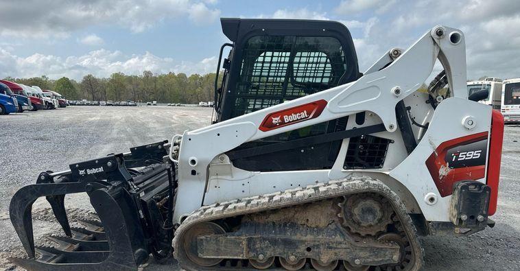 The 2022 Bobcat T595 tracked skid steer loader has 301 hours on the meter and is powered by a 4-cylinder Bobcat diesel engine. It features a hydrostatic transmission with two-speed travel for smooth, efficient operation.