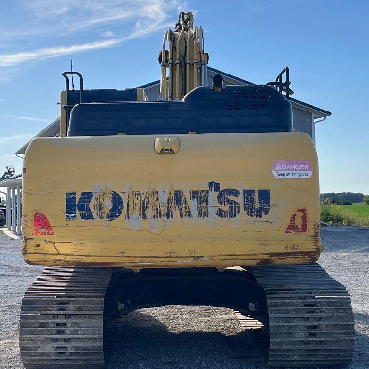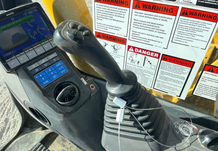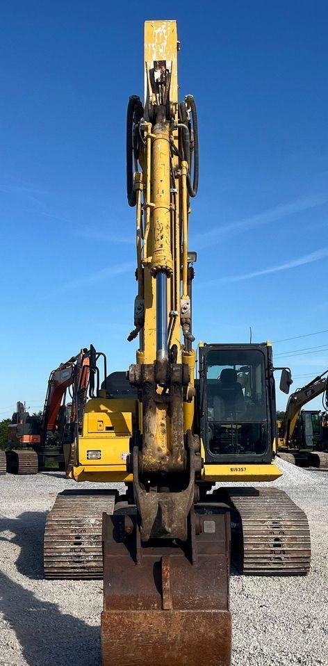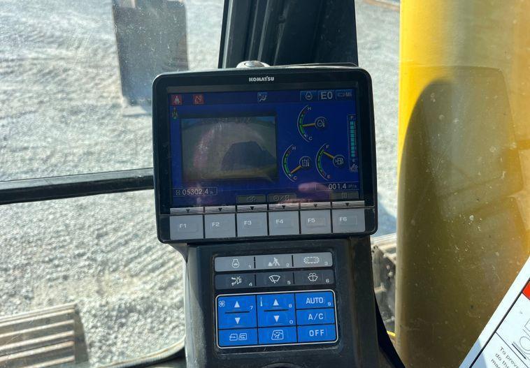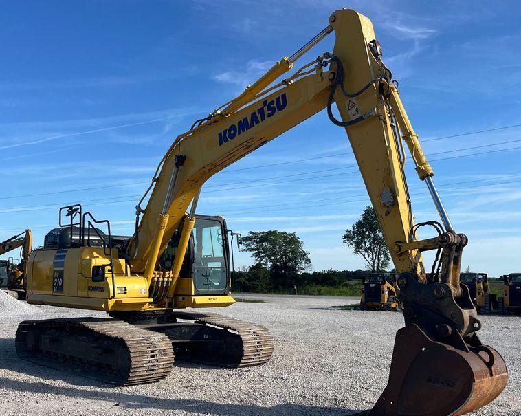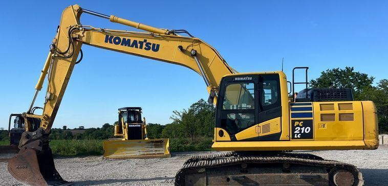 The 2019 Komatsu PC210LC-11 excavator has 5,302 hours on the meter and is powered by a Komatsu SAA6D107E-3-A six-cylinder diesel engine with a displacement of 6.7 liters. It features a hydrostatic transmission for smooth and efficient operation.